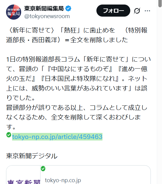 なので、さもありなんな元記事ではあったのだけれど、まさかおわびが出るとは思わなんだ。