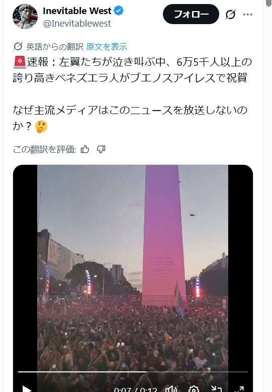 よって歓喜に沸くベネズエラ国民の様子が知られたわけだけれども、同時にこうも思ふのだ。