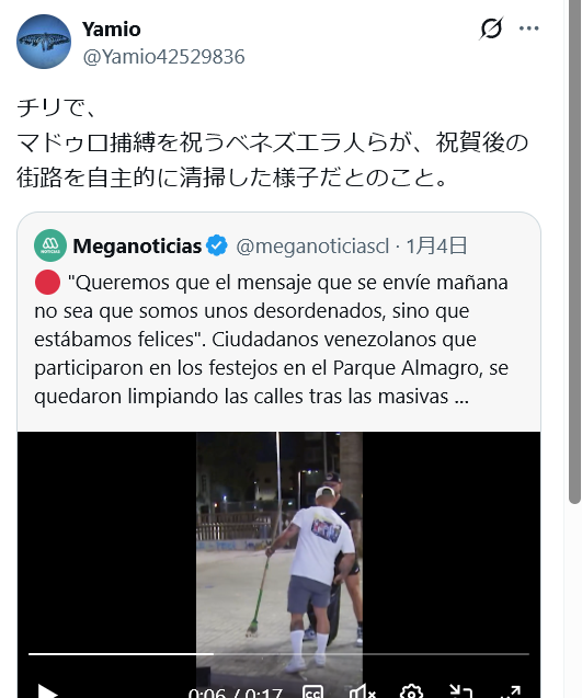 野党排除で強行した選挙不正や圧制の実情、または麻薬輸出による米国への麻薬テロ、および国民のトランプ歓迎ムードについてはあまり報じられていないそうな。