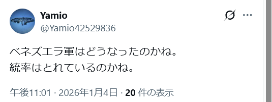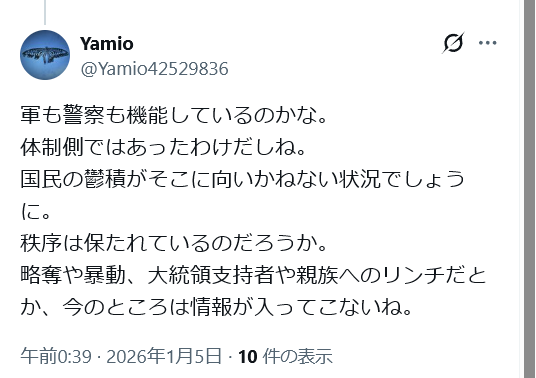 戦況も、すぐにマドゥロが拘束されたことも、そして米軍が仕切っているらしいことも伝わった。