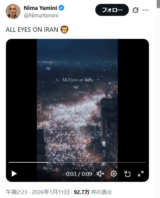 ベネズエラの一件が刺激になったのか、いまイランが揺れている。